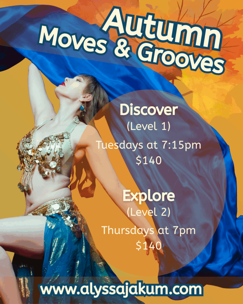Let the changing leaves inspire your changing moves! Join us as we shimmy and flow through autumn’s magic. Whether you’re falling for belly dance for the first time or rekindling your love of the dance. Perfect for all skill levels – from saplings to seasoned dancers.